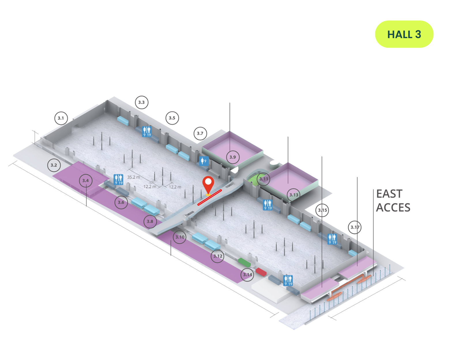 Branding on the travelator in the walkway above Hall 3, connecting to the other halls.